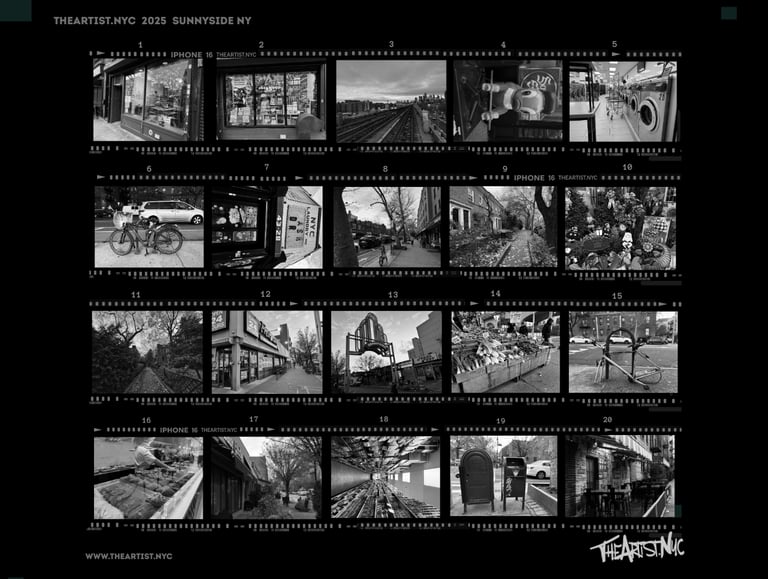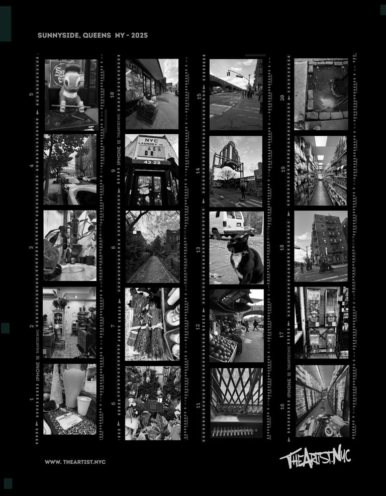 This collection features modern black and white contact sheet–style photographs capturing everyday scenes, moments, and environments through the eye of a contemporary NYC photographer.