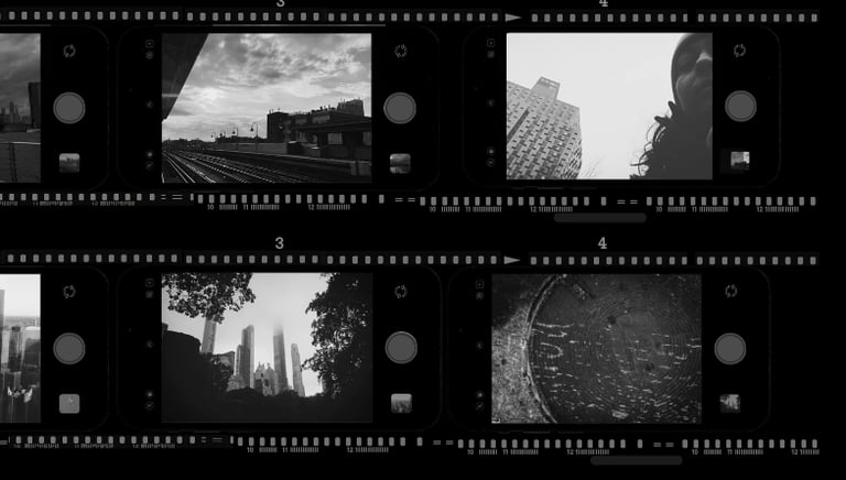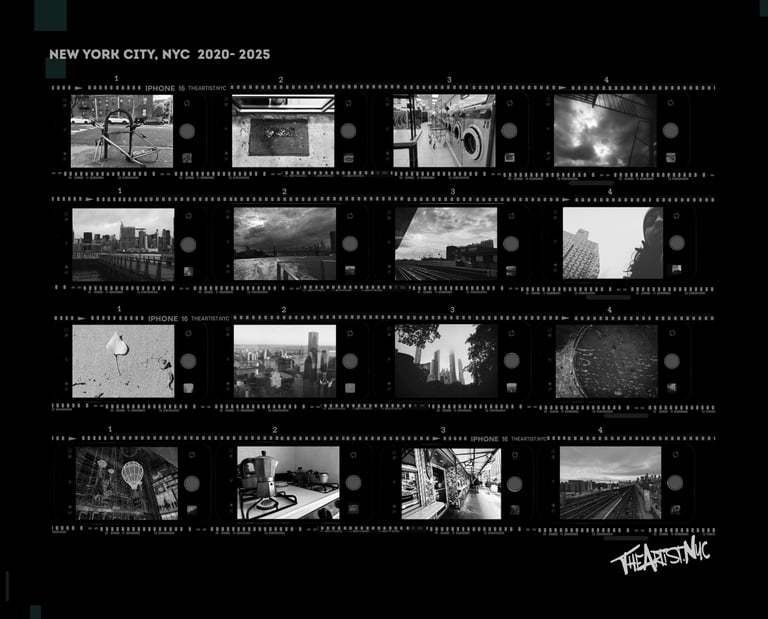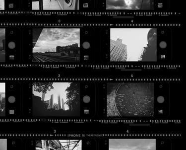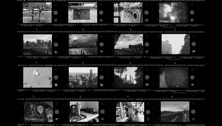 Today, I document my life through a cellphone, the lens of our time. I don’t view digital images as lesser; I see them as a continuation of what came before. These contemporary contact sheets merge those experiences, presenting digital moments inside structures inspired by traditional film processes.