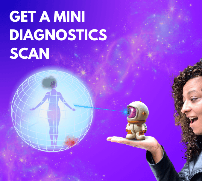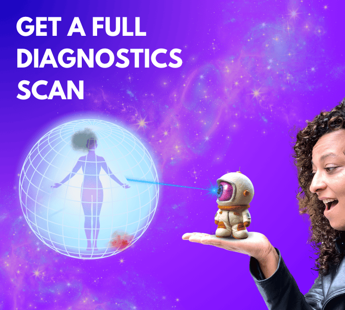 A rapid energy field scan to detect your most urgent glitch. Cosmonaut and I run a light-speed diagnostic using color-coded signals from your aura. You’ll receive 3 key insights plus a recommended patch to help recalibrate your human ship.