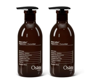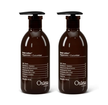 Osana Body Lotion Moisturizer for Dry Skin with Shea Butter & Coconut Oil, Peppermint & Cucumber Scented, 15oz Dual Pack